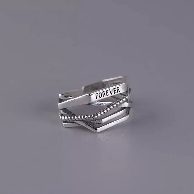 Nietuzinkowy pierścionek z napisem Forever.