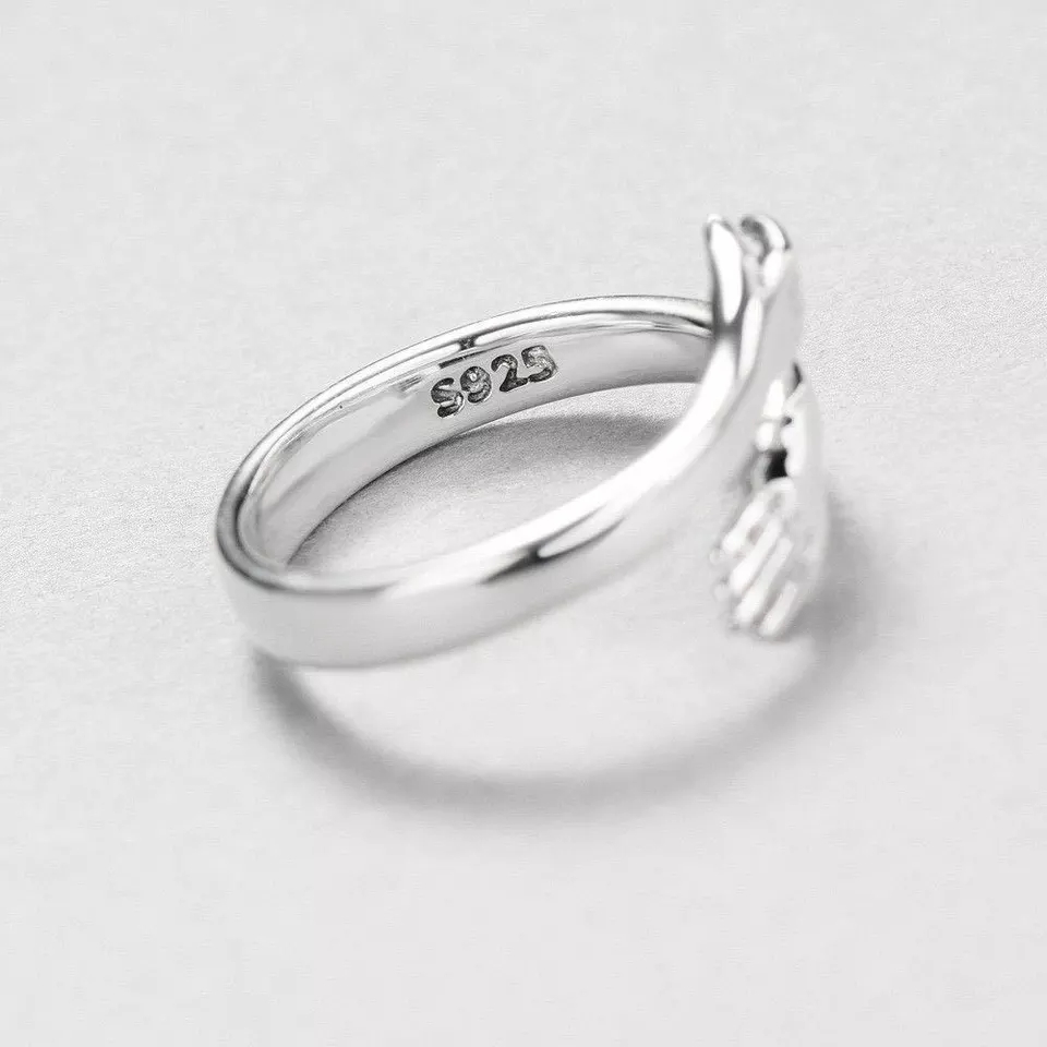 Srebrny pierścionek Hug , przedstawiający przytulające się ręce.