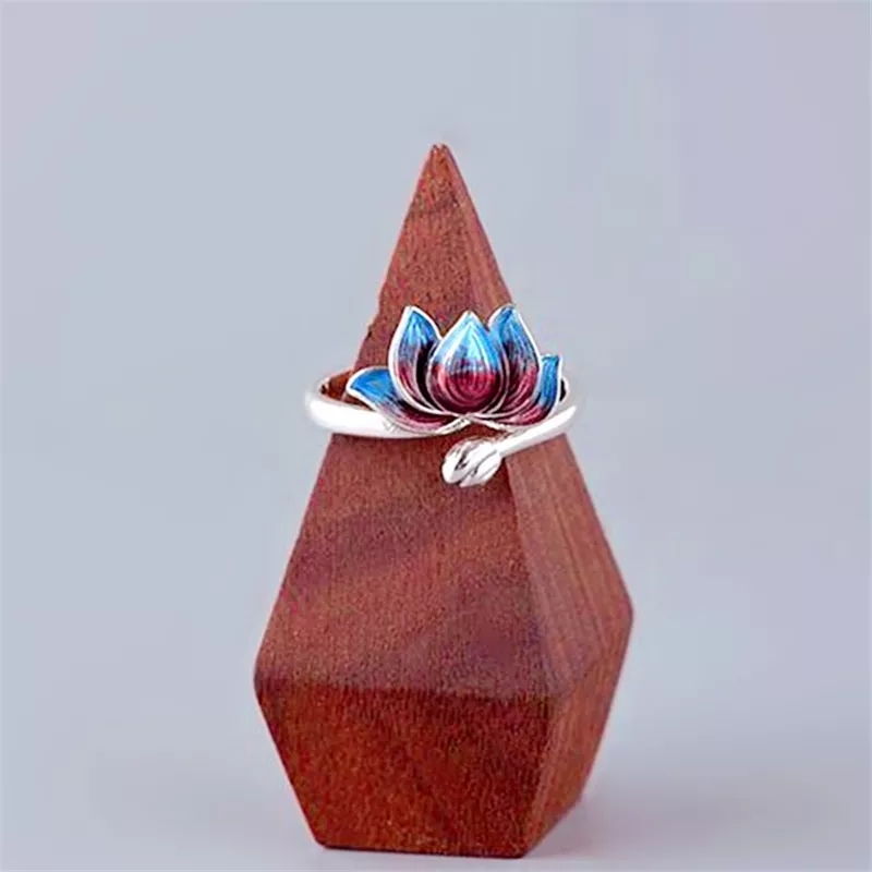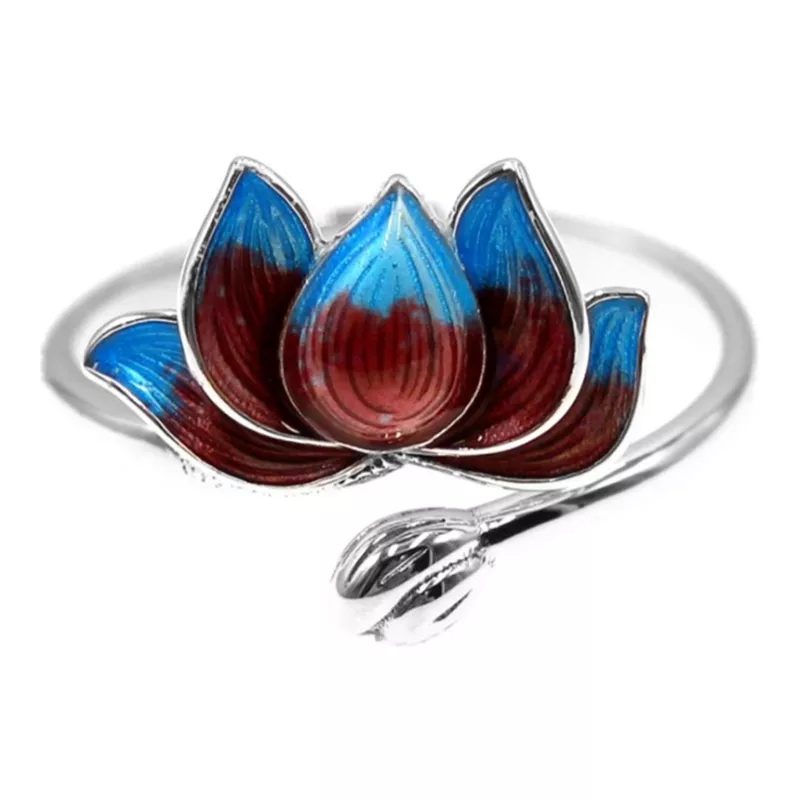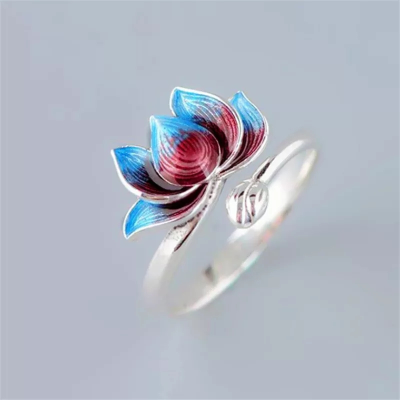 Nietuzinkowy srebrny pierścionek z motywem kwiatowym.