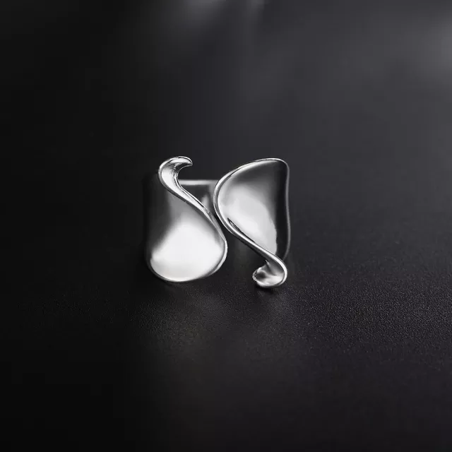 Duży fikuśny srebrny pierścionek.