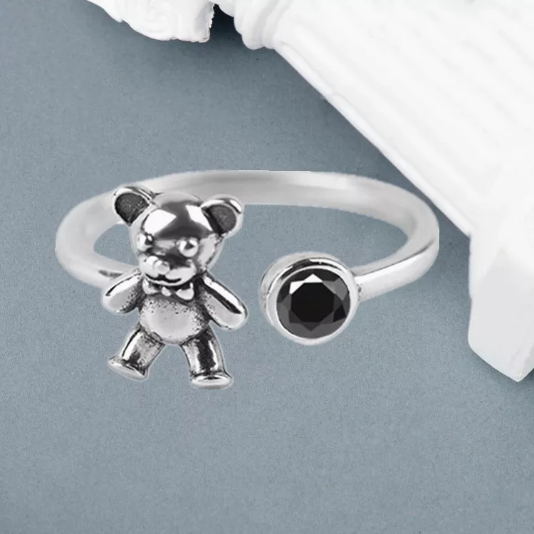 Nietuzinkowy srebrny pierścionek inspirowany Tous.