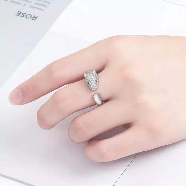 Nietuzinkowy pierścionek z motywem tygrysa zdobionego cyrkoniami.