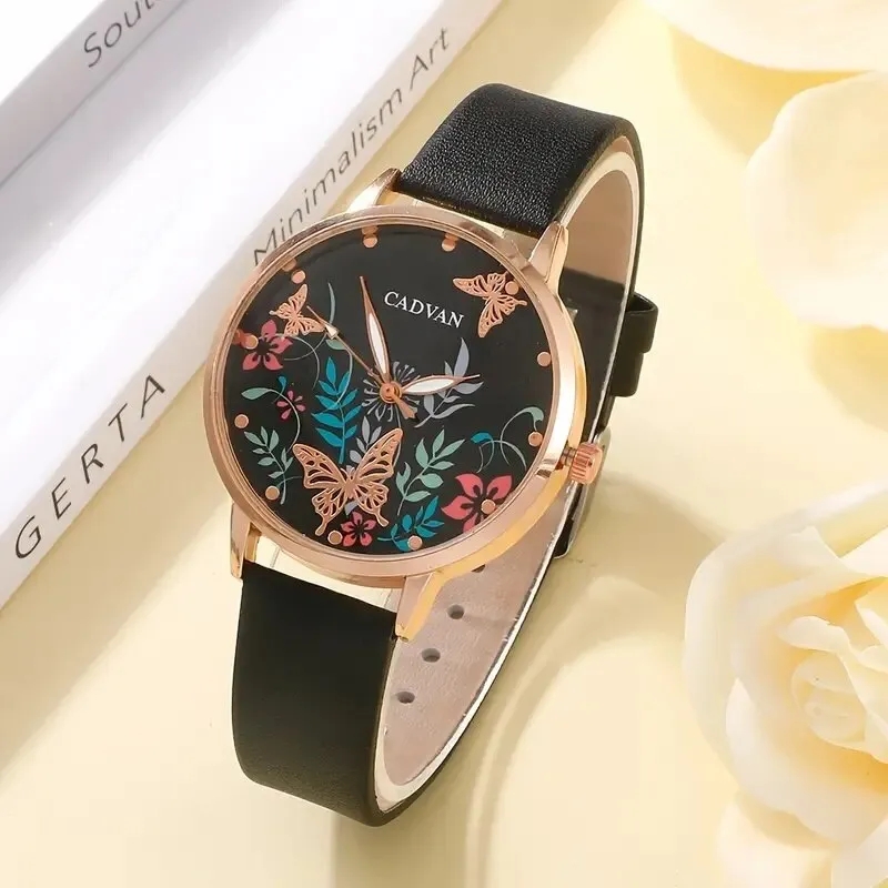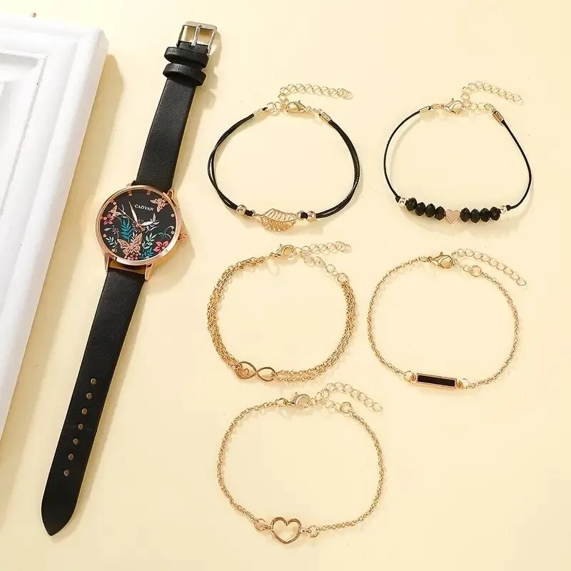 Elegancki zestaw damskiej biżuterii w kolorze czarnym ze złotymi zdobieniami.