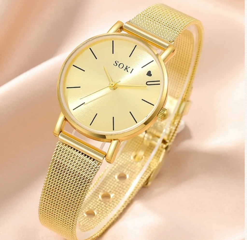 Elegancki, delikatny zestaw biżuterii damskiej w kolorze złotym.